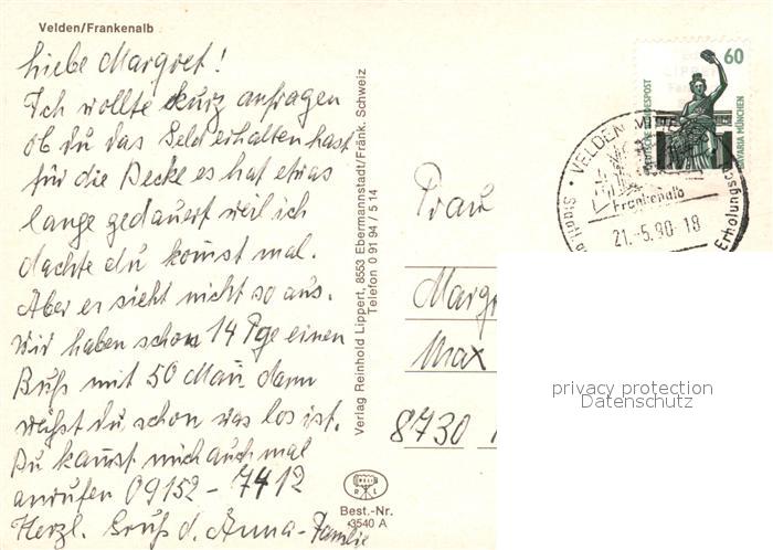 73214790 alte Postkarte Velden Mittelfranken Panorama postalisch gelaufen Erhaltung siehe scans [FriedD77] KatCode: 11110009574160