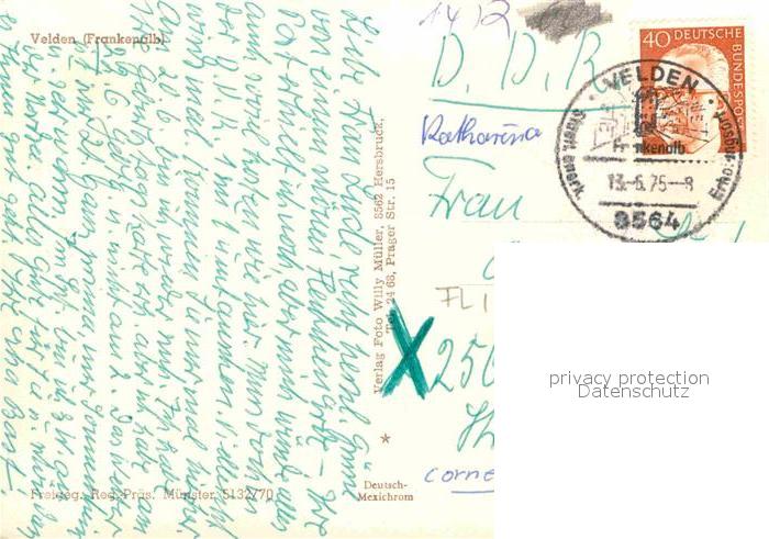 72877152 alte Postkarte Velden Mittelfranken Stadtpanorama postalisch gelaufen Erhaltung siehe scans [FriedD77] KatCode: 11110009574160