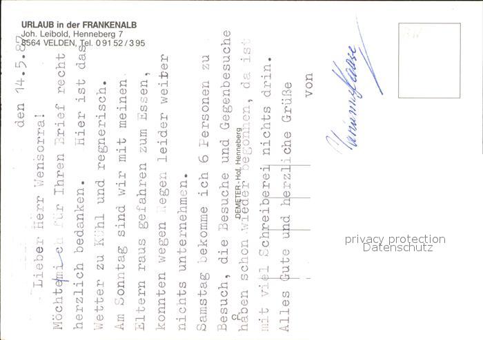 72548361 Velden Mittelfranken Urlaub auf dem Bauernhof postalisch nicht gelaufen Erhaltung siehe scans [LiesaD40 kv019box] KatCode: 11110009574160