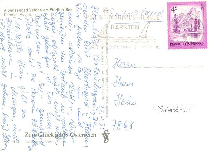 73024420 alte Postkarte Velden Woerthersee postalisch gelaufen Erhaltung siehe scans [PaolaD17] KatCode: 11390211020725