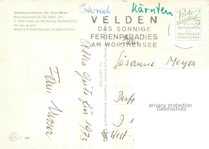74156498 Velden Woerthersee AT Gaestehaus-Gudrun Promenade See Segelboot Sitzbaenke Blumenschmuck Badesteg Woerthersee postalisch nicht gelaufen Erhaltung siehe scans [Karloger] KatCode: 11390211020725