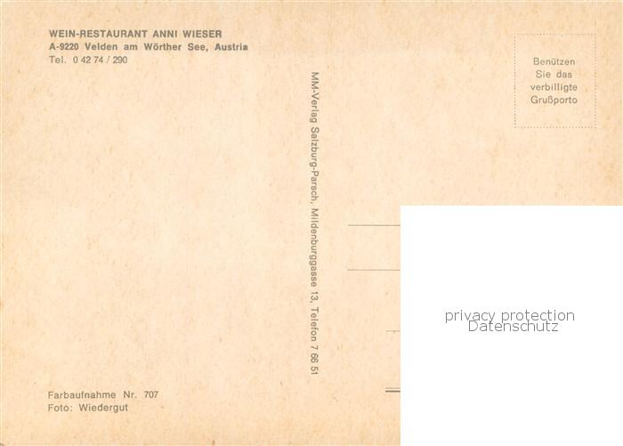 73764532 Velden Woerthersee AT Wein Restaurant Anni Wieser Gartenterrasse Gaststube postalisch nicht gelaufen Erhaltung siehe scans [WerneD78] KatCode: 11390211020725