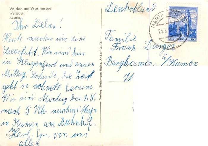 73937252 alte Postkarte Velden Woerthersee AT Westbucht postalisch gelaufen Erhaltung siehe scans [WerneD78] KatCode: 11390211020725