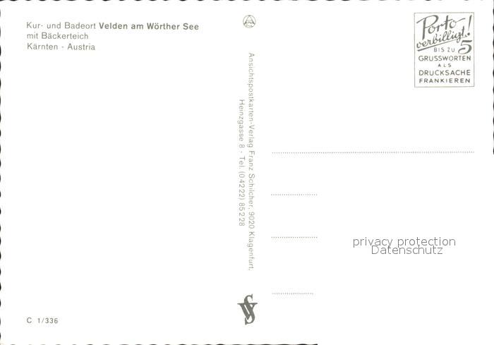 72500344 Velden Woerthersee Badeort Baeckerteich Luftaufnahme postalisch nicht gelaufen Erhaltung siehe scans KatCode: 11390211020725