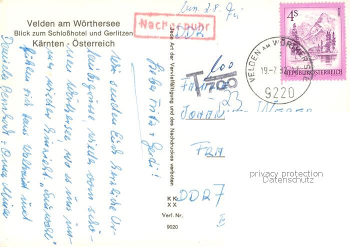 73628688 alte Postkarte Velden Woerthersee Blick zum Schlosshotel und Gerlitzen postalisch gelaufen Erhaltung siehe scans [WerneD78] KatCode: 11390211020725
