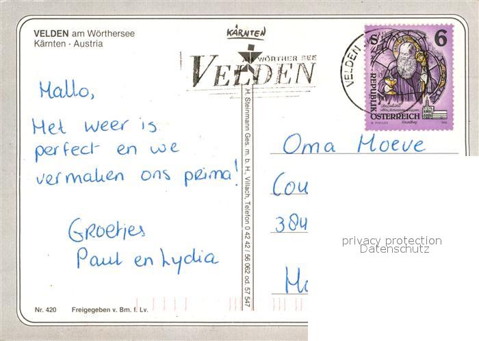 73016491 alte Postkarte Velden Woerthersee Fliegeraufnahme postalisch gelaufen Erhaltung siehe scans [NatalD47] KatCode: 11390211020725