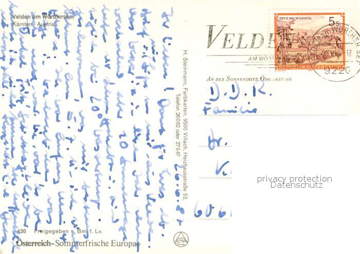 73645408 alte Postkarte Velden Woerthersee Fliegeraufnahme postalisch gelaufen Erhaltung siehe scans [WerneD78] KatCode: 11390211020725