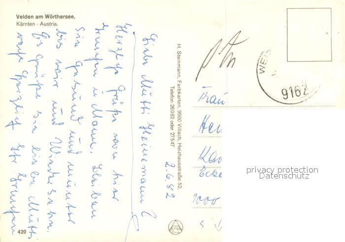 73707328 alte Postkarte Velden Woerthersee Fliegeraufnahme postalisch gelaufen Erhaltung siehe scans [WerneD78] KatCode: 11390211020725