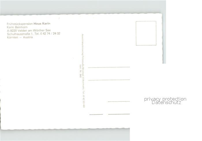 71850805 Velden Woerthersee Fruehstueckspension Haus Karin Garten Liegewiese postalisch nicht gelaufen Erhaltung siehe scans KatCode: 11390211020725