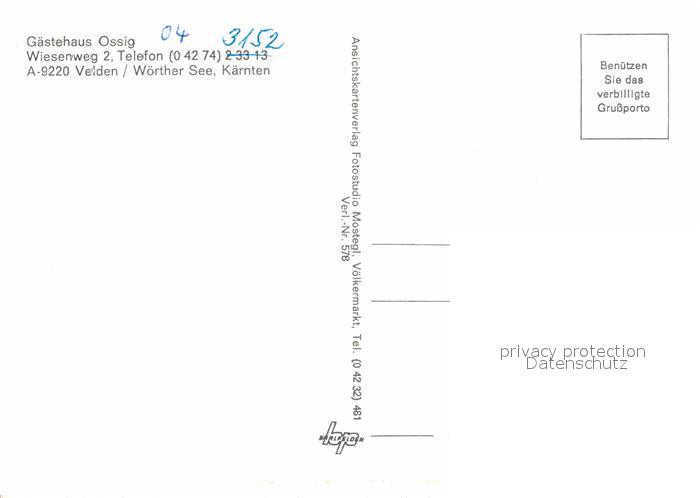 72716586 Velden Woerthersee Gaestehaus Ossig postalisch nicht gelaufen Erhaltung siehe scans [LiesaD40] KatCode: 11390211020725