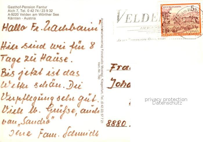73125926 alte Postkarte Velden Woerthersee Gasthof Fantur postalisch gelaufen Erhaltung siehe scans [NatalD47] KatCode: 11390211020725