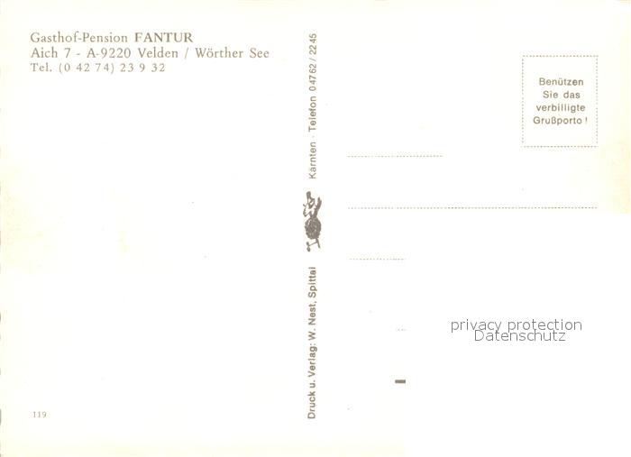13235230 Velden Woerthersee Gasthof Pension Fantur Swimming Pool postalisch nicht gelaufen Erhaltung siehe scans [FriedD77] KatCode: 11390211020725