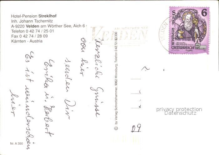 71899789 alte Postkarte Velden Woerthersee Hotel Pension Streklhof Hallenbad postalisch gelaufen Erhaltung siehe scans KatCode: 11390211020725