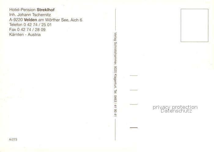 13235950 Velden Woerthersee Hotel Pension Streklhof postalisch nicht gelaufen Erhaltung siehe scans [FriedD77] KatCode: 11390211020725