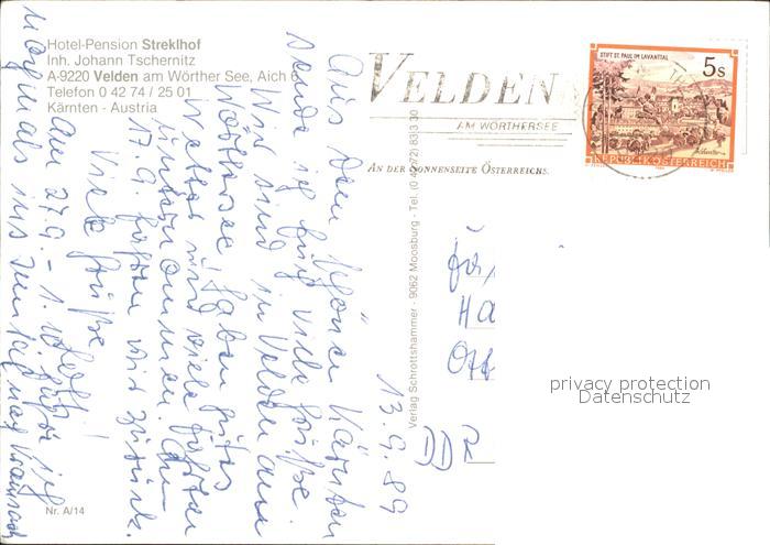 71960075 alte Postkarte Velden Woerthersee Hotel Streklhof postalisch gelaufen Erhaltung siehe scans KatCode: 11390211020725