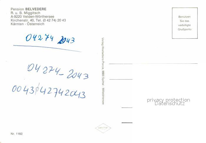 12880885 Velden Woerthersee Pension Belvedere postalisch nicht gelaufen Erhaltung siehe scans [KathaD81] KatCode: 11390211020725