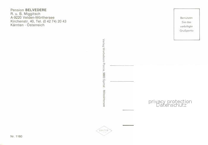 12603949 Velden Woerthersee Pension Belverdere postalisch nicht gelaufen Erhaltung siehe scans [LiesaD40] KatCode: 11390211020725