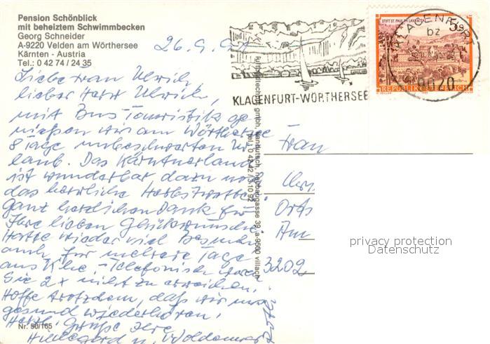 73661570 alte Postkarte Velden Woerthersee Pension Schoenblick mit beheiztem Pool postalisch gelaufen Erhaltung siehe scans [WerneD78] KatCode: 11390211020725