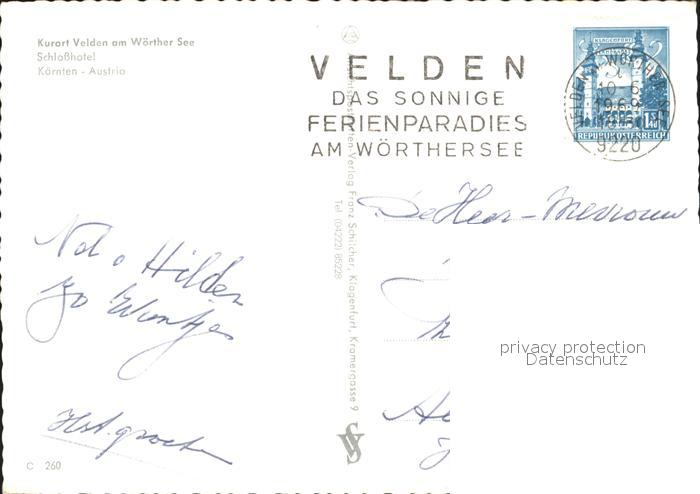 72274633 alte Postkarte Velden Woerthersee Schlosshotel postalisch gelaufen Erhaltung siehe scans KatCode: 11390211020725