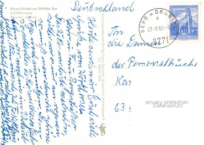 72620736 alte Postkarte Velden Woerthersee Schlossterrasse postalisch gelaufen Erhaltung siehe scans [LiesaD40] KatCode: 11390211020725