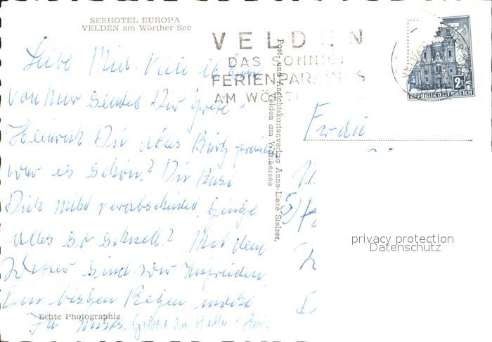 71986532 alte Postkarte Velden Woerthersee Seehotel Europa postalisch gelaufen Erhaltung siehe scans KatCode: 11390211020725