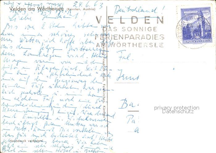 72447111 alte Postkarte Velden Woerthersee Uferpromenade Badesteg Restaurant Terrasse postalisch gelaufen Erhaltung siehe scans KatCode: 11390211020725