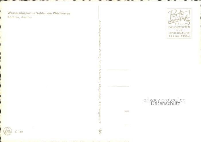 72138357 Velden Woerthersee Wasserskisport postalisch nicht gelaufen Erhaltung siehe scans KatCode: 11390211020725