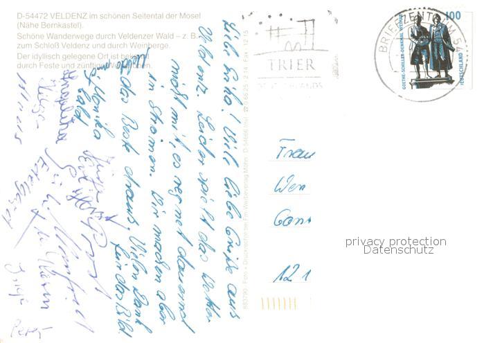 73671722 alte Postkarte Veldenz Kirchen Burgruine postalisch gelaufen Erhaltung siehe scans [WerneD78] KatCode: 11110007231126