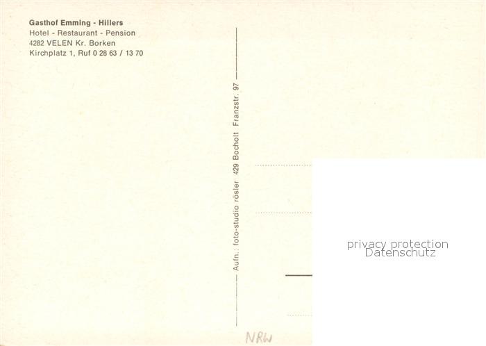 73662582 Velen Gasthof Emming Hillers Hotel Restaurant Pension postalisch nicht gelaufen Erhaltung siehe scans [FriedD77] KatCode: 11110005554064