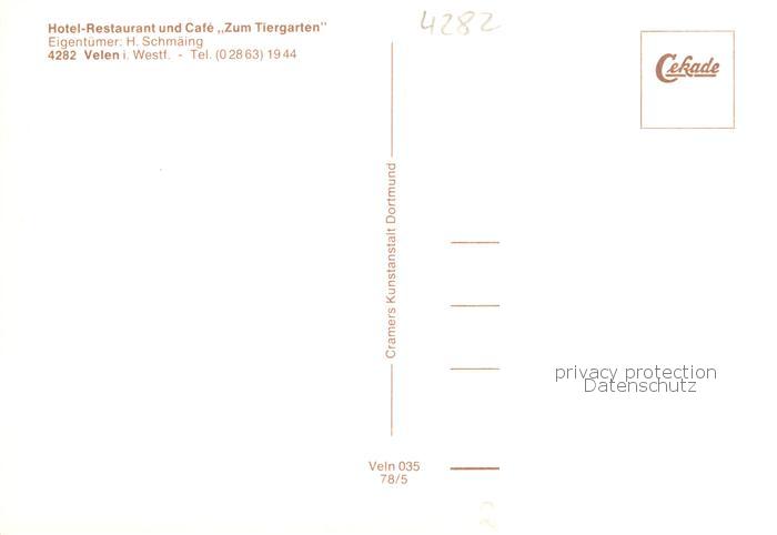 73867347 Velen Hotel zum Tiergarten Rsstaurant Cafe Kegelbahn Freibad postalisch nicht gelaufen Erhaltung siehe scans [FriedD77] KatCode: 11110005554064