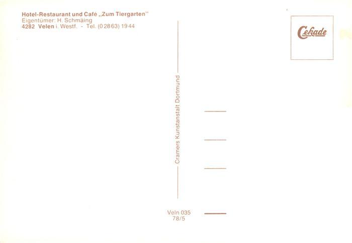 73897101 Velen Westfalen Hotel Restaurant und Cafe Zum Tiergarten Gastraeume Bar Schwimmbad Kegelbahn postalisch nicht gelaufen Erhaltung siehe scans [WerneD78] KatCode: 11110005554064