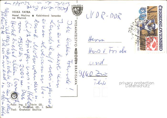 old postcard Velka Fatra Hotel Malina postalisch gelaufen Erhaltung siehe scans