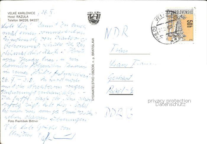 old postcard Velke Karlovice Hotel Razula postalisch gelaufen Erhaltung siehe scans [AndreD76 kt119box]