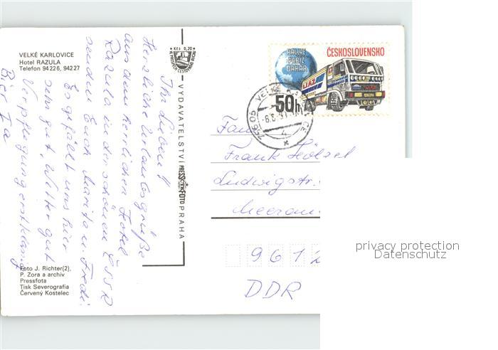 old postcard Velke Karlovice Hotel Razula Gastraum Panorama postalisch gelaufen Erhaltung siehe scans