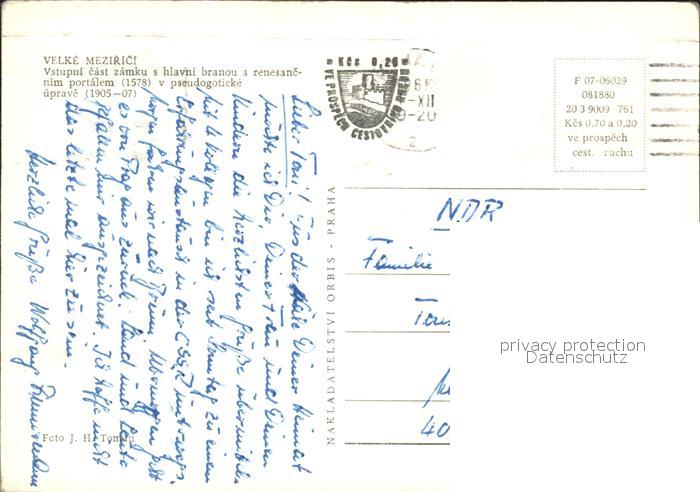 old postcard Velke Mezirici Schloss und Museum postalisch gelaufen Erhaltung siehe scans