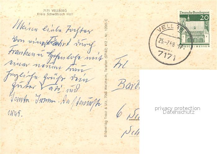 73201333 alte Postkarte Vellberg Marktbrunnen Schloss Burganlage Stoeckenburg postalisch gelaufen Erhaltung siehe scans [KathaD81] KatCode: 11110008127089