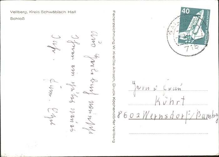 alte Postkarte Vellberg Schwaebisch Hall Schloss postalisch gelaufen
