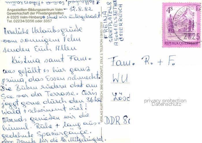 72631509 alte Postkarte Velm-Goetzendorf Angestellten Bildungszentrum postalisch gelaufen Erhaltung siehe scans [LiesaD40] KatCode: 11390126030859