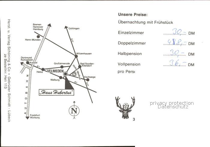 72529617 Velmeden Witzenhausen Haus Hubertus postalisch nicht gelaufen Werbekarte (keine Postkarte) Erhaltung siehe scans KatCode: 11110006636006