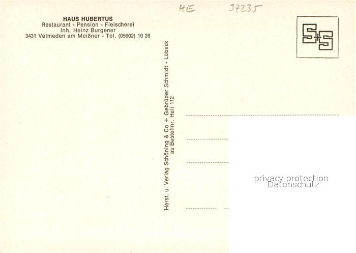 73651124 Velmeden Witzenhausen Restaurant Pension Haus Hubertus postalisch nicht gelaufen Erhaltung siehe scans [FriedD77] KatCode: 11110006636006