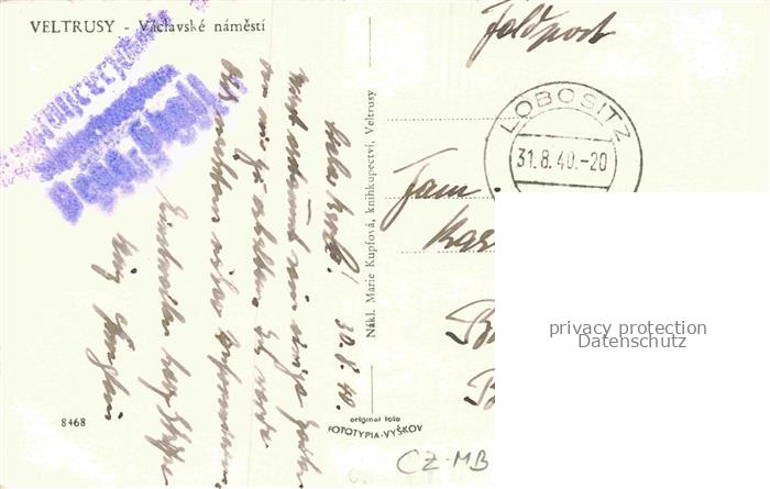 74034075 old postcard Veltrusy Melnik CZ Vaclavske namesti postalisch gelaufen Feldpost – Stempel Erhaltung siehe scans [WerneD78] KatCode: 11520