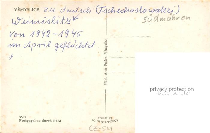 73770291 Vemyslice Moravsky Krumlov CZ Ortszentrum postalisch nicht gelaufen Erhaltung siehe scans [FriedD77] Frie Katcode 11520