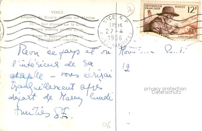 13493452 carte postale Vence-la-Jolie Chapelle de Rosaire Soir d orage sur la Croix postalisch gelaufen Erhaltung siehe scans [FriedD77] KatCode: 11170006106157