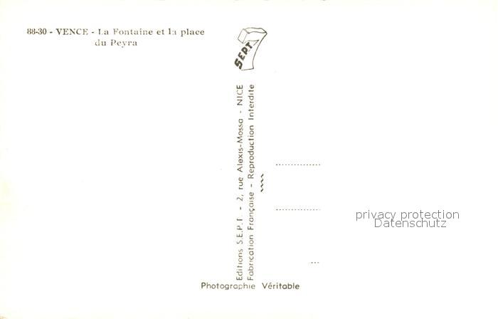 13130902 Vence-la-Jolie Fontaine et Place du Peyra postalisch nicht gelaufen Erhaltung siehe scans [FriedD77] KatCode: 11170006106157