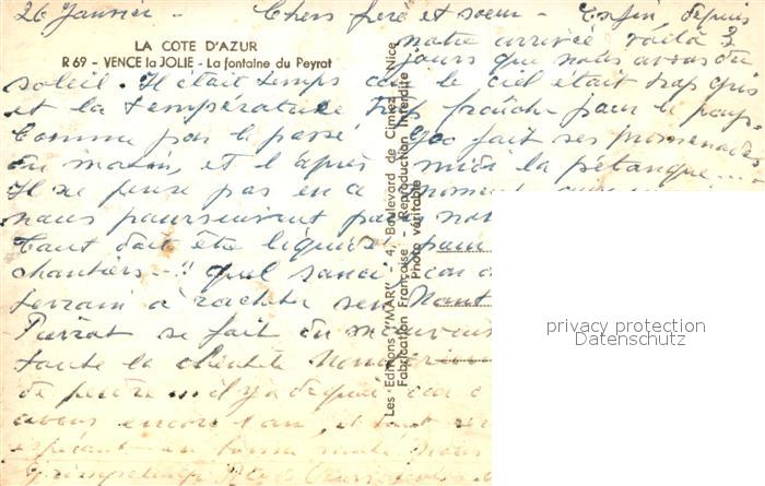 13582889 Vence-la-Jolie La fontaine du Peyrat postalisch nicht gelaufen Erhaltung siehe scans [WerneD78] Wern Katcode 11170006106157