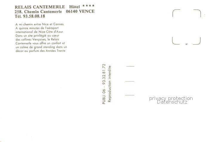 13631464 Vence-la-Jolie Relais Cantemerle Hotel Restaurant Aufenthaltsraum postalisch nicht gelaufen Erhaltung siehe scans [WerneD78] Wern Katcode 11170006106157