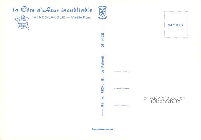 13021264 Vence-la-Jolie Rue du Portail-Levis postalisch nicht gelaufen Erhaltung siehe scans [PaolaD17] KatCode: 11170006106157