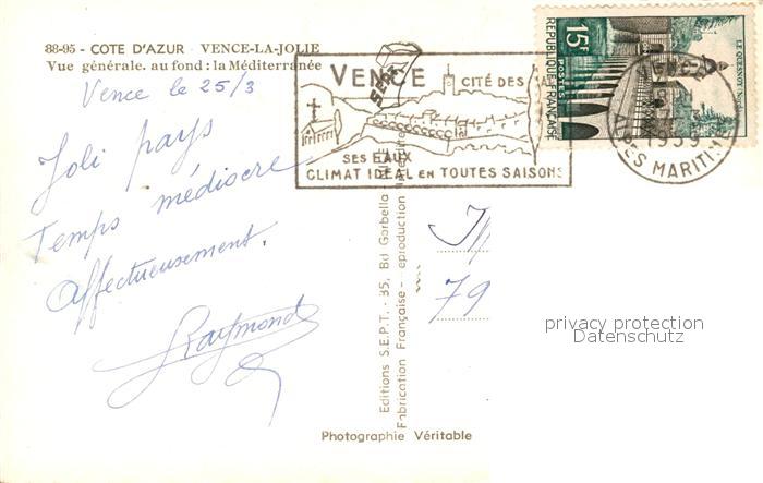 13579888 carte postale Vence-la-Jolie Vue Generale au fond la Méditerranée postalisch gelaufen Erhaltung siehe scans [FriedD77] KatCode: 11170006106157