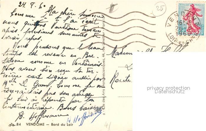 13503843 carte postale Vendome Bord du Loir postalisch gelaufen Erhaltung siehe scans [FriedD77] KatCode: 11170041241269