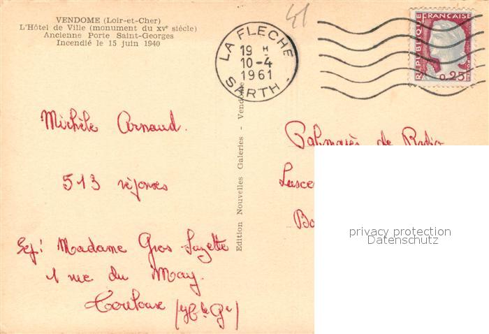 13522080 carte postale Vendome Hotel de Ville Porte Saint Georges postalisch gelaufen Erhaltung siehe scans [LiesaD40] KatCode: 11170041241269